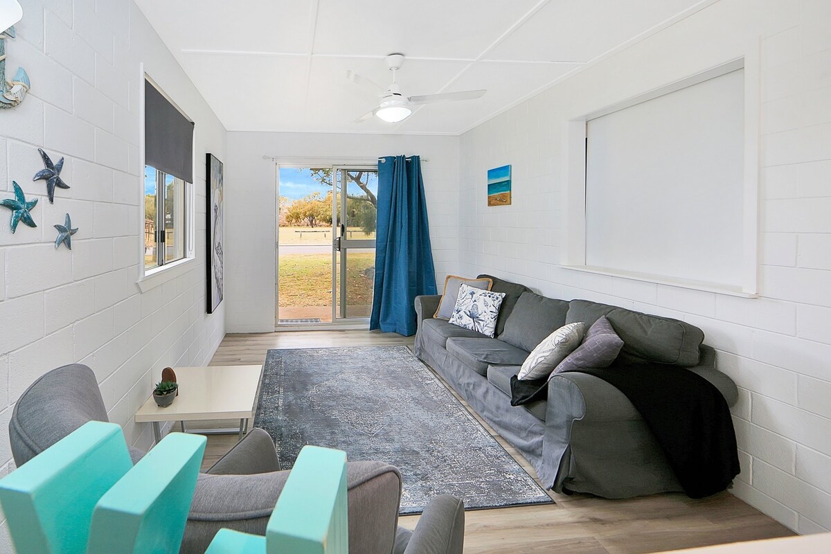 Welkom, ontspan en luister naar de oceaan in onze liefdevol gerestaureerde 1960'sbeach hut' Anchors Away '(duplex) Shabby Chic ten top Gelegen tegenover het Innes Park, Park en recreatiegebied waar het park de oceaan en inham ontmoet Ga zitten en ontspan in de lounge aan de voorkant en lees een boek of ontspan en luister naar de oceaan Innes Park is een klein rustig stadje zonder café 's. Het licht van Bargara met winkels, restaurants en cafés liggen op slechts 9 minuten rijden. Bekijk afbeeldingen en kaarten in advertentiefoto 's