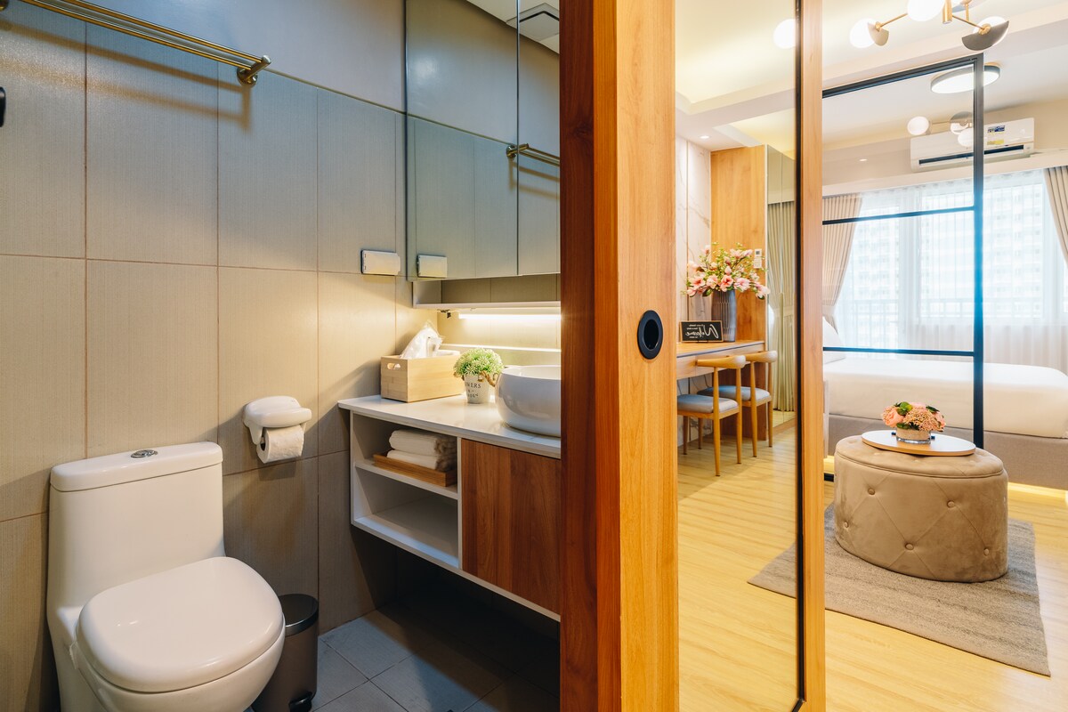 Luxe wonen in het hartje van BGC. De accommodatie is ambachtelijk ontworpen door de eigenaren, geïnspireerd op hun wereldwijde reizen en verblijven in gerenommeerde hotels. Ervaar de kamer in hotelstijl met uitzicht op de Uptown, perfect beloopbaar, nabijgelegen openbaar vervoer en ridesharing. Dit is het leven op zijn best BGC, op enkele minuten afstand van luxe winkelcentra, luxe voorzieningen in resortstijl. Het is stijlvol, speels, fris en leuk. Er gaat niets boven het gemak van een verblijf midden in een bruisende township van Uptown Bonifacio.