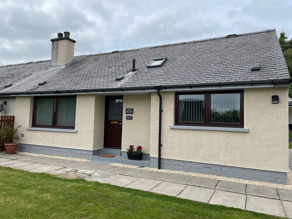 Maak je vakantie eenvoudig in mijn rust, 2015 gebouwd, goed geïsoleerd, warm vakantiehuis, allemaal op één niveau. Een 5 minuten lopen naar Dornoch met zijn stijlvolle Schotse stenen gebouwen, kathedraal, pubs, restaurants, cafés en prachtige onafhankelijke winkels. Het ligt op anderhalve kilometer van het prachtige strand en de beroemde golfbaan Royal Dornoch. Het huis is ons persoonlijke vakantiehuis weg van onze Schotse Highlands rewilding croft op 15 kilometer afstand. Dornoch heeft een bijzonder microklimaat aan zee en is altijd warmer dan Muie!