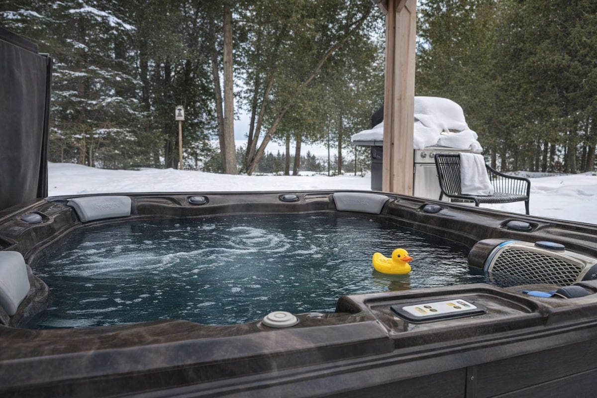 Ontsnap naar een licht, ruim huisje met prachtige zonsondergangen en panoramisch uitzicht op Colpoy's Bay net buiten Wiarton! Perfect voor groepsvakanties het hele jaar door met: 4 kingsize slaapkamers, een queensize Murphy-bed en 3 volledige badkamers, waaronder een spa-achtige master ensuite. Geniet van een open indeling met een volledig gevulde keuken, twee grote familiekamers met smart-tv's, twee grote patio's en een ruim kampvuurgebied. Ervaar de natuurlijke schoonheid van het Bruce-schiereiland terwijl je ontspant in comfort en stijl.