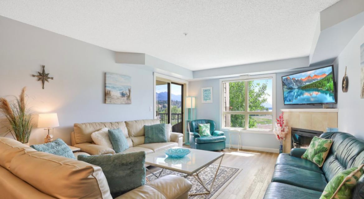 ⭐️ Experience The Valley Lifestyle in your home away from home. You’re within steps to the golf course, within minutes to hot springs, ski hills, and hiking trails. ✔ Amazing views, AC, private balcony, BBQ, kitchen, parking ✔Beds: King & pull-out queen sofabed ✔Pro cleaners with 60-point checklist ✔Fast WiFi, Two Smart TVs ✔Pet-friendly, easy outdoor access ★ Message us for special request ★ ★ Book your dates b4 they’re gone!★