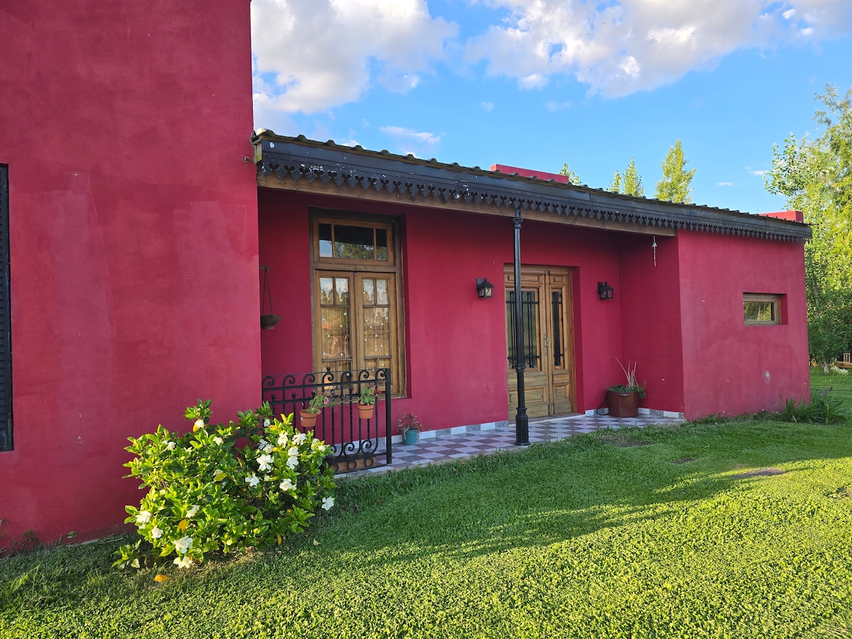 Ruim gloednieuw landhuis, volledig gevuld voor 5 personen 2 slaapkamers 1 badkamer.. Buitendek met een prachtig uitzicht . Australische tank. 10 km van San Antonio de Areco toegang via onverharde weg. Landelijke omgeving. WiFi Verwarming. 2 slaapkamers: Een met een tweepersoonsbed, een andere met 2 eenpersoonsbedden en een ander bed dat is voorbereid in de woonkamer. We accepteren geen huisdieren. Beddengoed en handdoeken zijn inclusief. Promo Mayo tot augustus: vertrek tot 19.00 uur op zondag. Rust en rust.