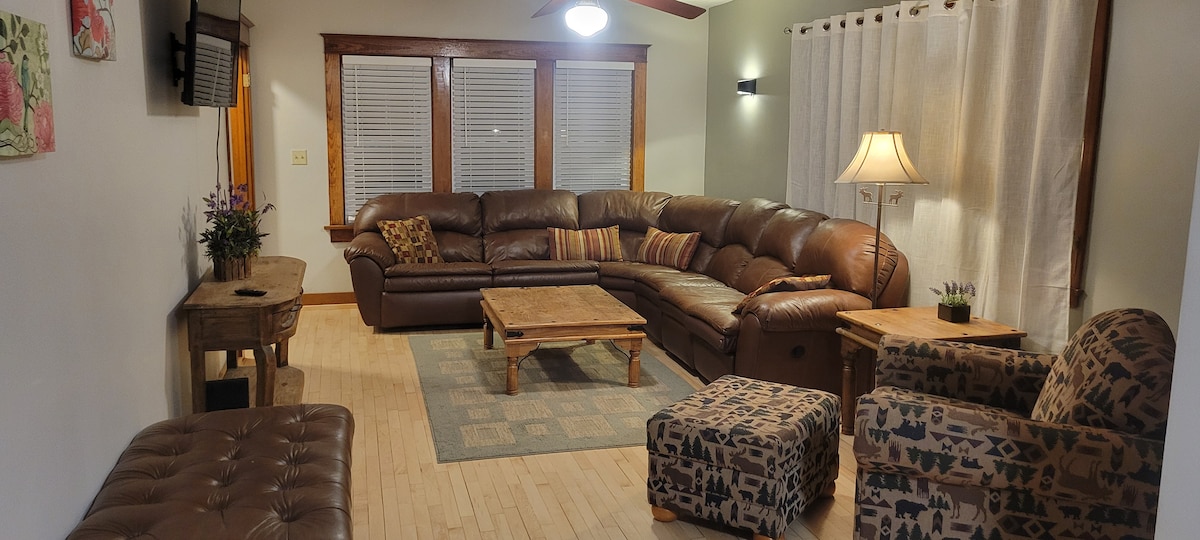 *low tox/fragrance free-Bring the whole family to Snowy Owl Lodge—Left Side! Sleeps 12 w/ 4 bedrooms, 2 lofts, 2 full, 2 queen, 2 twin beds, futon, & 2 full baths. Enjoy the hot tub, deck, grill, firepit, laundry & plenty of space to relax. Just steps from Ski Brule, 10 mins to town, on snowmobile trail & near 5 lakes including Blue-Ribbon trout streams. Perfect for all seasons—ski, snowboard, snow tube, snowmobile, fish, hike, hunt, bike, waterfalls, autumn colors, & more in the ❤️ of the U.P.