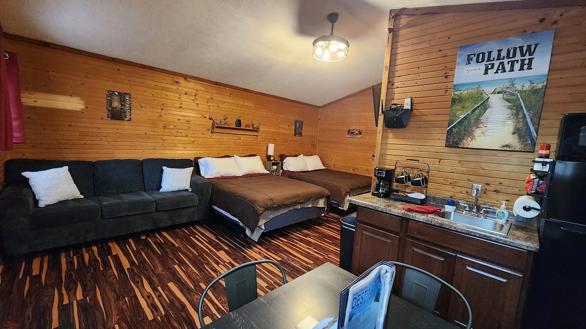 Deze gezellige rustieke A frame hut beschikt over 3 queensize bedden, 1 badkamer en een ruime woonkamer. De keuken is van alle benodigdheden voorzien om van het koken een fluitje van een cent te maken. Buiten vind je een vuurplaats en een houtskoolgrill. Direct aan de overkant van de weg is het Lincoln Hills trail-systeem dat verbinding maakt met duizenden hectaren schilderachtige paden. Gelegen in de buurt van Club 37 trailhead, Pine River, State Land, Manistee National Forest, Caberfae Ski and Golf Resort, Tippy Dam en meer! Cadillac, Ludington, Manistee binnen 35 minuten