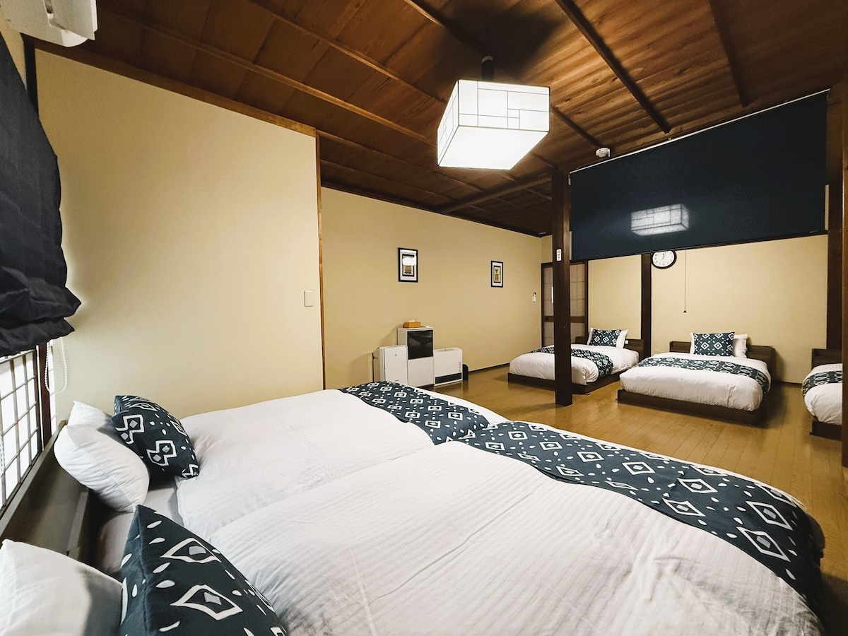 Verblijf in een gezellig en rustig huis met gratis gebruik van 5 fietsen tijdens je verblijf. Het huis ligt op slechts 8 minuten lopen van de wijk Higashi Chaya. Maximaal 9 personen kunnen verblijven. <Plattegrond> [1F] ・Woonruimte (slaapbank x 1, extra matras x 1) ・Café-tafel ・Keuken ・Toilet ・Badkamer ・Wasserette [2F] ・Gastenkamer A (tweepersoonsbed x 1, extra matras x 1) ・Gastenkamer B (tweepersoonsbed x 1, eenpersoonsbed x 1) ・Gastenkamer C (eenpersoonsbed x 1) ・Vrije ruimte (traplanding)