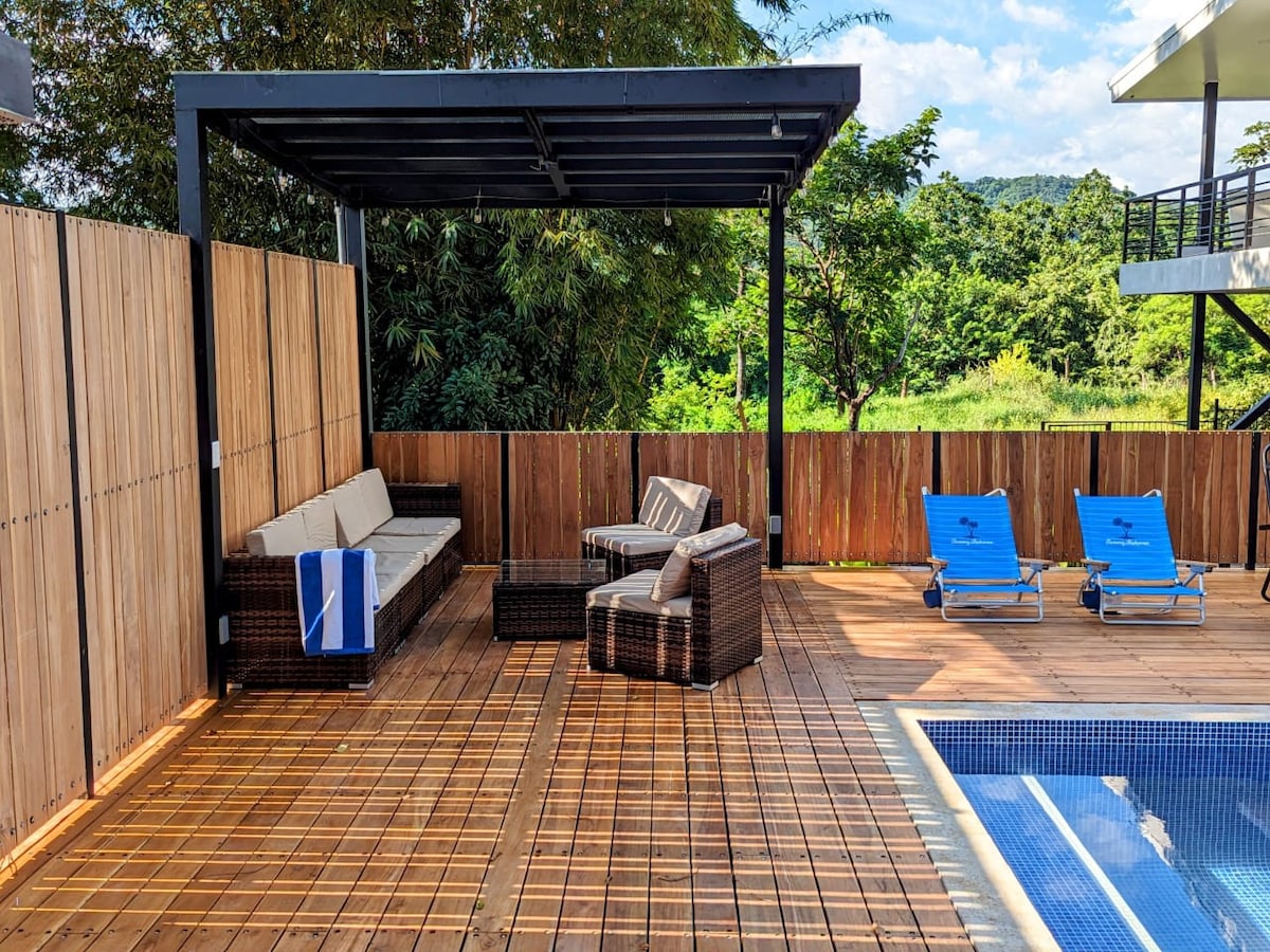 Welkom bij House of G– A Luxurious Modern Condo Villa in Paradise. House of G ligt hoog op de heuveltoppen van het paradijs en is een prachtige moderne appartementenvilla met twee eenheden en het meest adembenemende uitzicht op de oceaan dat Samara te bieden heeft. Onze G2-villa is 2 slaapkamers, 2 badkamers met een eigen privézwembad en buitenruimte. Ontworpen voor diegenen die architectonische schoonheid en naadloos binnen-buitenleven waarderen, belooft dit unieke toevluchtsoord een onvergetelijk verblijf.
