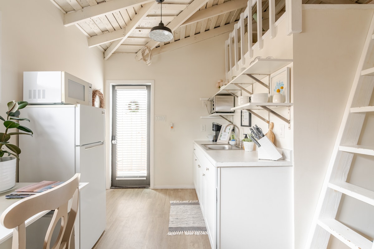 Our NEWLY REMODELED (2021) spacious loft apartment is nestled above the garden, One block from the beach and close to UCSB. Created is a restful, quiet space for you to unwind inside and out. We love all people, but due to the design of the open loft our space is unsafe for kiddos….but not grown ups! Thank you for understanding. Lounge in the GARDEN, run the MORE MESA trail in the morning and walk the BEACH at sunset. Butterflies, honey bees, birds and kitty Beau are waiting to greet you!