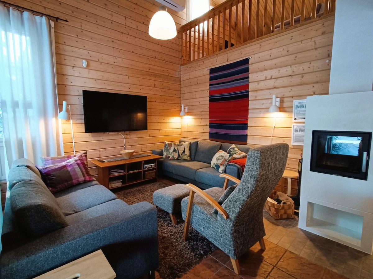 Geniet van het gemak van het leven op deze rustige, centraal gelegen plek. Hulhavanpuisto B2 is een gezellig en luxe kelderwoning appartement. Het huisje is geschikt voor 4+2 personen en heeft 33m2 en een vide van 16m2. Het appartement is ideaal voor een stel of klein gezin. Het huisje heeft een keuken-woonkamer met eettafels en een open haard, evenals een goed uitgeruste keuken, een kleine nis, een sauna, PH en toilet, en een terras met een zijuitzicht. Luppovesi, wandel- en ski-/fietspaden in de buurt van het huisje