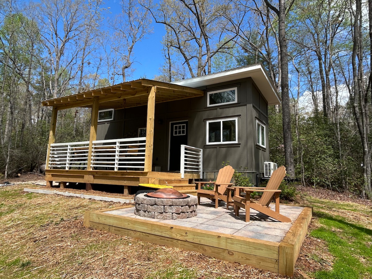 GLOEDNIEUW tiny house/huisje van 490 m ² genesteld in het bos in een landelijke omgeving. Compleet met een queensize slaapkamer, een tweepersoonsbed/dagbed en vervolgens een queensize bed op zolder ( comfortabel voor 4 volwassenen en één kind). Wij zijn gunstig gelegen op 16 mijl van I-85 afrit 1 op S Hwy 11. 20 minuten van Clemson, 8 minuten van Seneca, en op slechts een korte rit naar vele wandelpaden, meren en parken in de prachtige uitlopers van de Blue Ridge-bergen.
