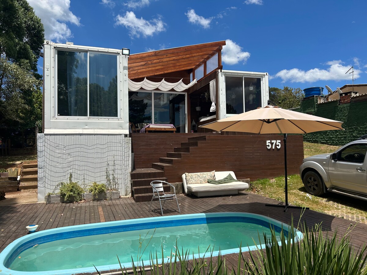 Terug naar het platform, nu met betere structuur en exclusief te huur. Gedifferentieerde architectuur waar jij en je gezin aangename momenten zullen doorbrengen, jezelf verfrissen in het zwembad, ontspannen in een bad met een prachtig uitzicht, of gewoon naar het meer staren met siertapijten. Casa Container 575 is een mix van gedurfde lijnen met direct contact met de natuur, omgeven door groen, maar met alle comfort die een modern huis kan bieden!