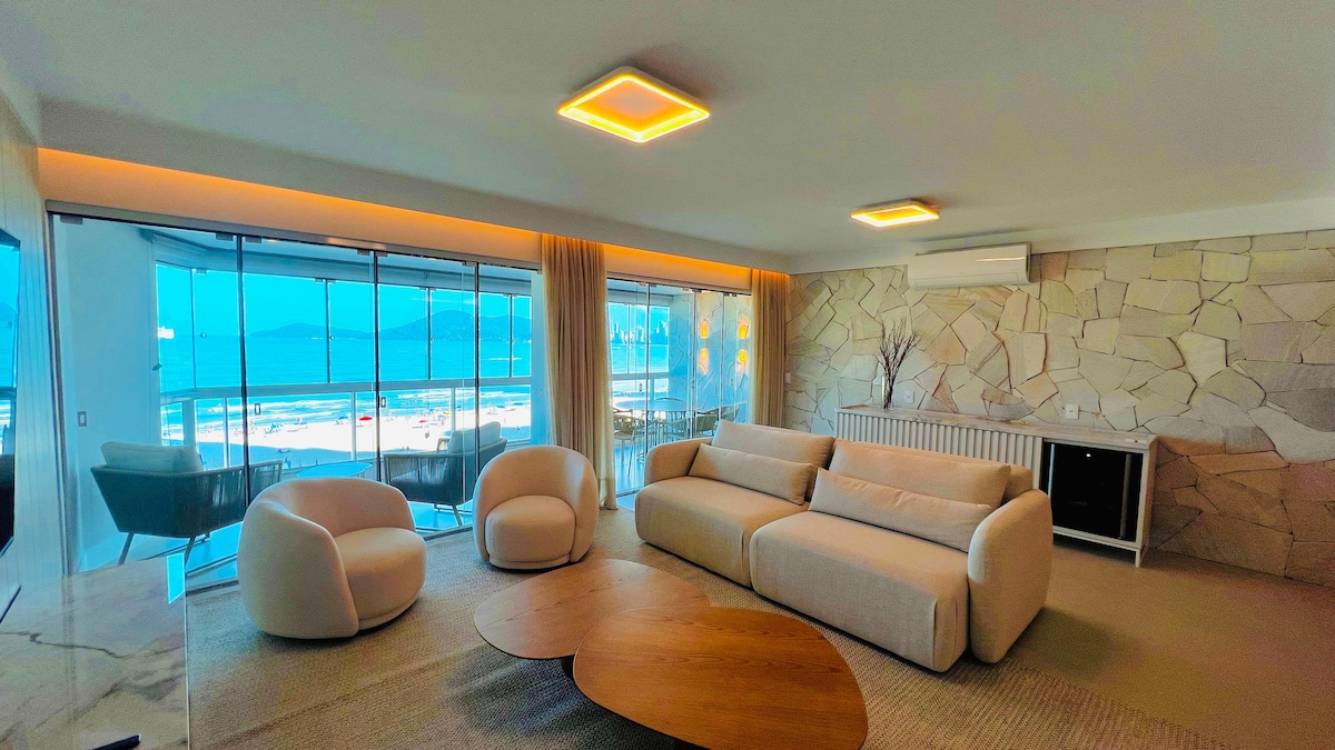 [Exclusief voor gezinnen] Ruim appartement met panoramisch zeezicht, gelegen aan Av. Atlântica, het belangrijkste en meest gewilde strand in Balneário Camboriú. ✅ Gastronomisch balkon met houtskoolbarbecue en een adembenemend uitzicht op de waterkant – perfect voor vrije tijd. ✅ Drie suites + 1 slaapkamer, voor comfort en privacy. ✅ Twee parkeerplaatsen. De ideale keuze voor gezinnen die op zoek zijn naar een luxe, comfortabel, goed uitgerust verblijf met uitzicht en een bevoorrechte locatie!