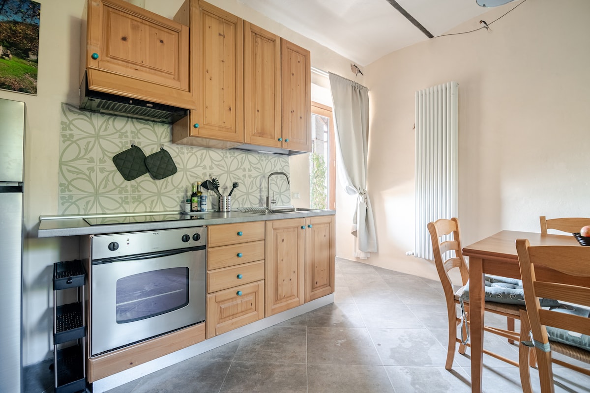 Appartement met slaapkamer, badkamer, woonkamer en keuken, met een fantastisch panoramisch uitzicht, ondergedompeld in het platteland, maar op slechts enkele minuten van het stadscentrum. Ideaal voor natuurliefhebbers, gezinnen, sporters. Houd er rekening mee dat, om de boerderij te bereiken en te genieten van het uitzicht en de rust van het platteland, het noodzakelijk is om een onverharde weg en soms smal te zien. De woning heeft twee andere wooneenheden voor de gasten. CIR (Regionale Identificatiecode) 012133-AGR-00006 CIN (Nationale Identificatiecode) IT012133B546CQHW98