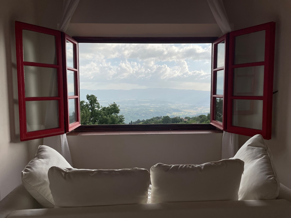 Een bevoorrechte kamer met uitzicht op de Friars 'Garden, vanwaar je de top van de berg Amiata kunt zien, ideaal voor diegenen die met hun hond op vakantie gaan. De kamers zijn ruim en koel. 's Ochtends wakker worden en genieten van het uitzicht op de weelderige tuin met bloemen en fruit is een waar voorrecht.
