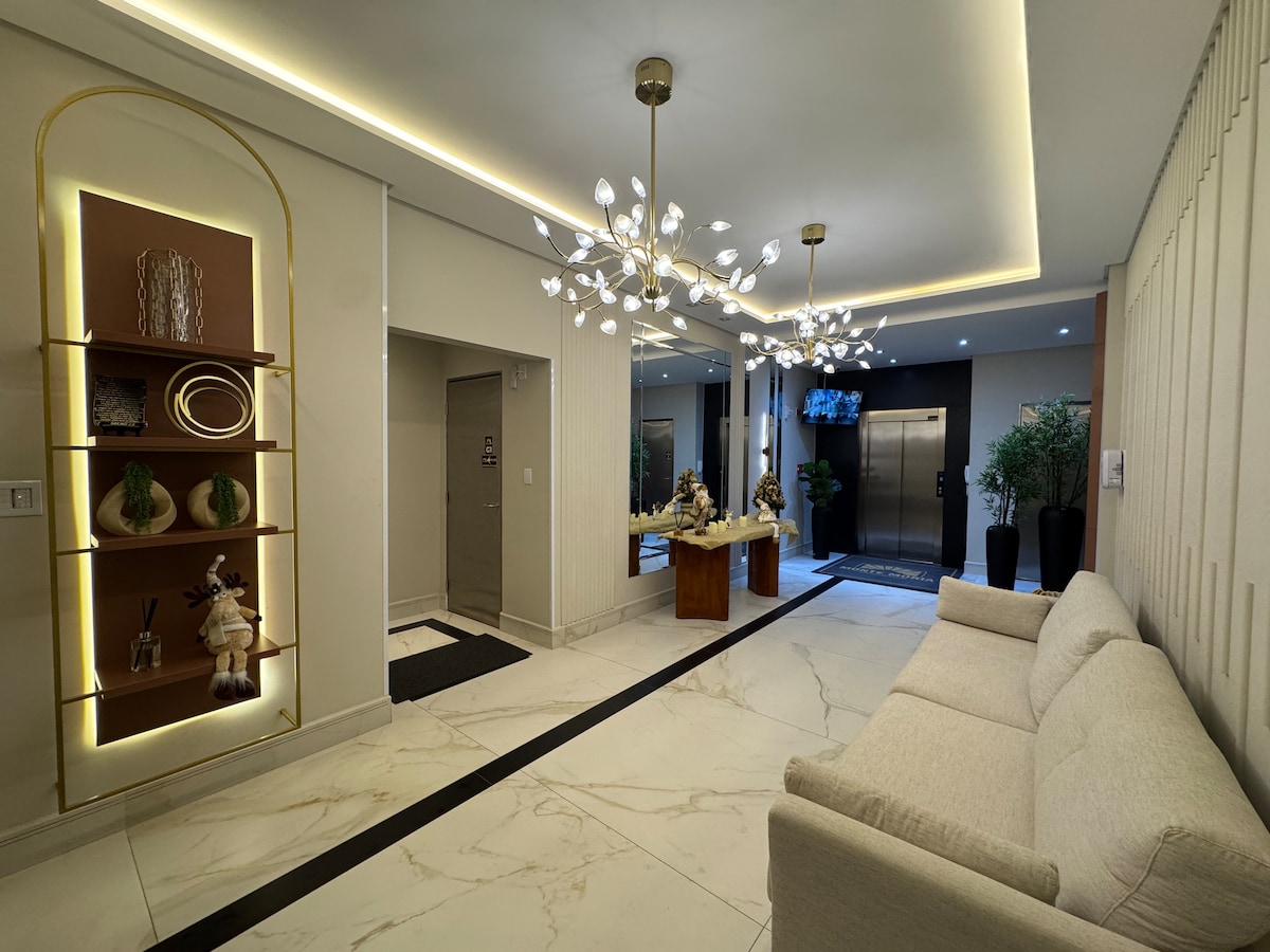 Este moderno e aconchegante studio de 17m² a 200 m do Mar localizado no prestigiado Manhattam Flat, oferece o equilíbrio perfeito entre funcionalidade e conforto. O studio pode ser alugado junto com o airbnb.com/h/mf1309a Mobiliado com móveis planejados e modernos, cama, roupeiro,. Mais um colchão extra tipo colchão Puf. Mesa,cadeiras,fogão,pia,torneira,liquidificador,cafeteira,air-frier, chaleira elétrica ,frigobar,micro ondas,sanduicheira. Box de vidro e chuveiro,secador de cabelo.