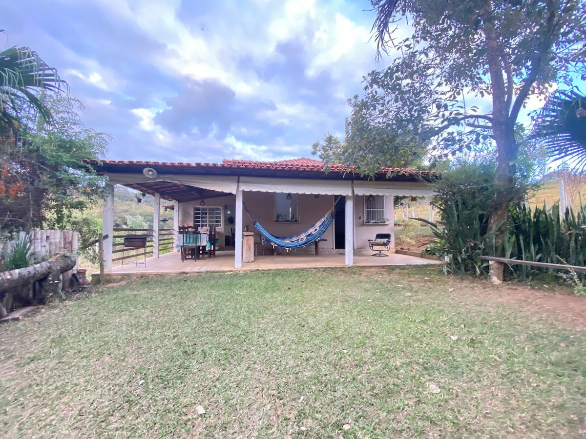 Ontspan met familie en vrienden op de rustige boerderij Aconchego da Serra, in de buurt van Belo Horizonte. Perfecte plek voor diegenen die frisse lucht en rust willen inademen, een volledig uitgerust huis om je te verwelkomen, met een zwembad en een buitenbad. Met een waterval op 8 km van de accommodatie.
