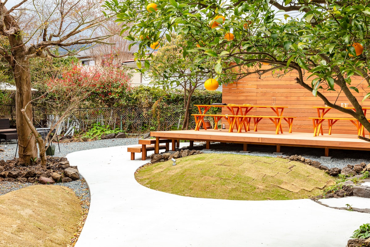 ‘TAKUMI‗AN’ is een monumentale woning uit een vervlogen tijdperk, genesteld in het gebied Toda/Sawakai, omgeven door een vissershaven, met kersenbloesems bedekte bergen en citrusboomgaarden. Het is herboren als een modern tuinhuis met houten frame in een ongerepte natuurlijke omgeving.Dit is de ultieme ‘Japanse levensstijlervaring’, waar je het rijke, vloeiende ritme van het leven kunt inademen. [Ochtendsereniteit en een keuken om van het seizoen te genieten] De nieuw gebouwde tuinkeuken is een speciaal podium om te genieten van een elegant ontbijt omringd door het groen van de bergen.Zet handgemalen koffie en voel de seizoensbries.Zo'n beleefd ochtendgebaar wekt een gevoel van het dagelijks leven dat is vergeten. [Privébar 's nachts met een vuur] Als de zon ondergaat, verandert het houten dek in een privébar speciaal voor jou.Praat met je dierbaren met het geluid van het vuur dat op de achtergrond knettert.In de stilte afgesneden van de buitenwereld, wordt de nacht dieper. [De vreugde van ontdekking en het comfort van het leven] Als je naar de kaap loopt, zie je een spectaculair uitzicht op de berg. Fuji die in de zee drijft.Ontdek dit uitzicht op je eigen manier en geniet van het leven in de havenstad.Uitgerust met een complete keuken, gasdroger en snelle wifi, beloven we het comfort van een lang verblijf. Herontdek hier het tijdloze ritme van het Japanse leven.