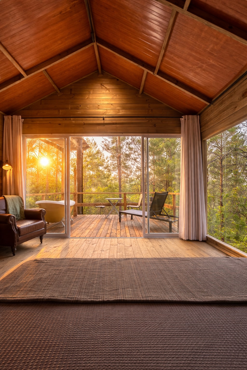 NOVO !!! 🌿Viva o luxo do simples ! A Cabana Encantada é um refúgio romântico entre pinheiros, com lareira e banheira para momentos de puro relaxamento. Pensada para casais, combina privacidade, conforto e uma atmosfera acolhedora. A iluminação quente, o design em madeira e a vista para a natureza criam o cenário ideal para desacelerar. Com cozinha equipada e ambiente silencioso, é perfeita para viver dias especiais e memoráveis.🌿