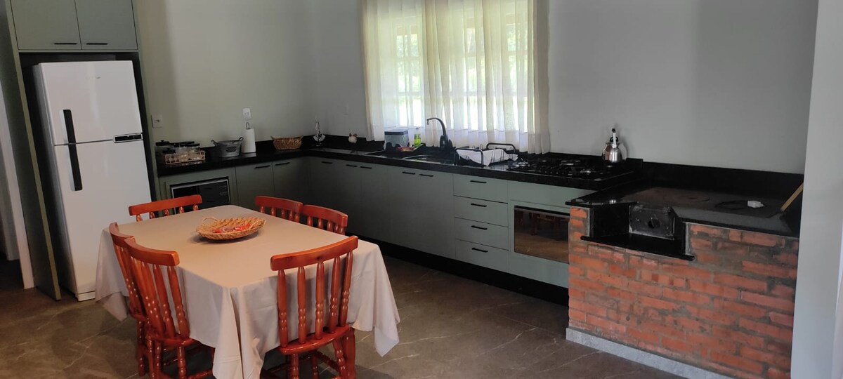 🏡 **Casa ampla com 7 suítes**, garantindo conforto e privacidade para todos os hóspedes. 🛏️ Quartos aconchegantes, com roupa de cama e toalhas. 🍽️ Cozinha equipada e sala de jantar espaçosa para refeições em grupo. 🎉 **Grande área de festas**, com excelente capacidade para confraternizações, aniversários, retiros e encontros especiais. 🌴 Amplo gramado e área verde, cercados pela tranquilidade do interior catarinense.