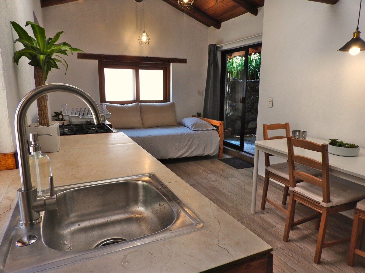 Word wakker tussen bomen en natuurlijk licht in Casita Woods, een warm en elegant toevluchtsoord midden in het bos van Valle de Bravo. Perfect om de stekker uit het stopcontact te halen, te lezen bij de vuurplaats of te genieten van koffie op het terras omgeven door groen. Op enkele minuten van het meer en het centrum, maar ver genoeg om totale rust te voelen. Ideaal voor romantische uitjes of een creatieve pauze in de natuur.