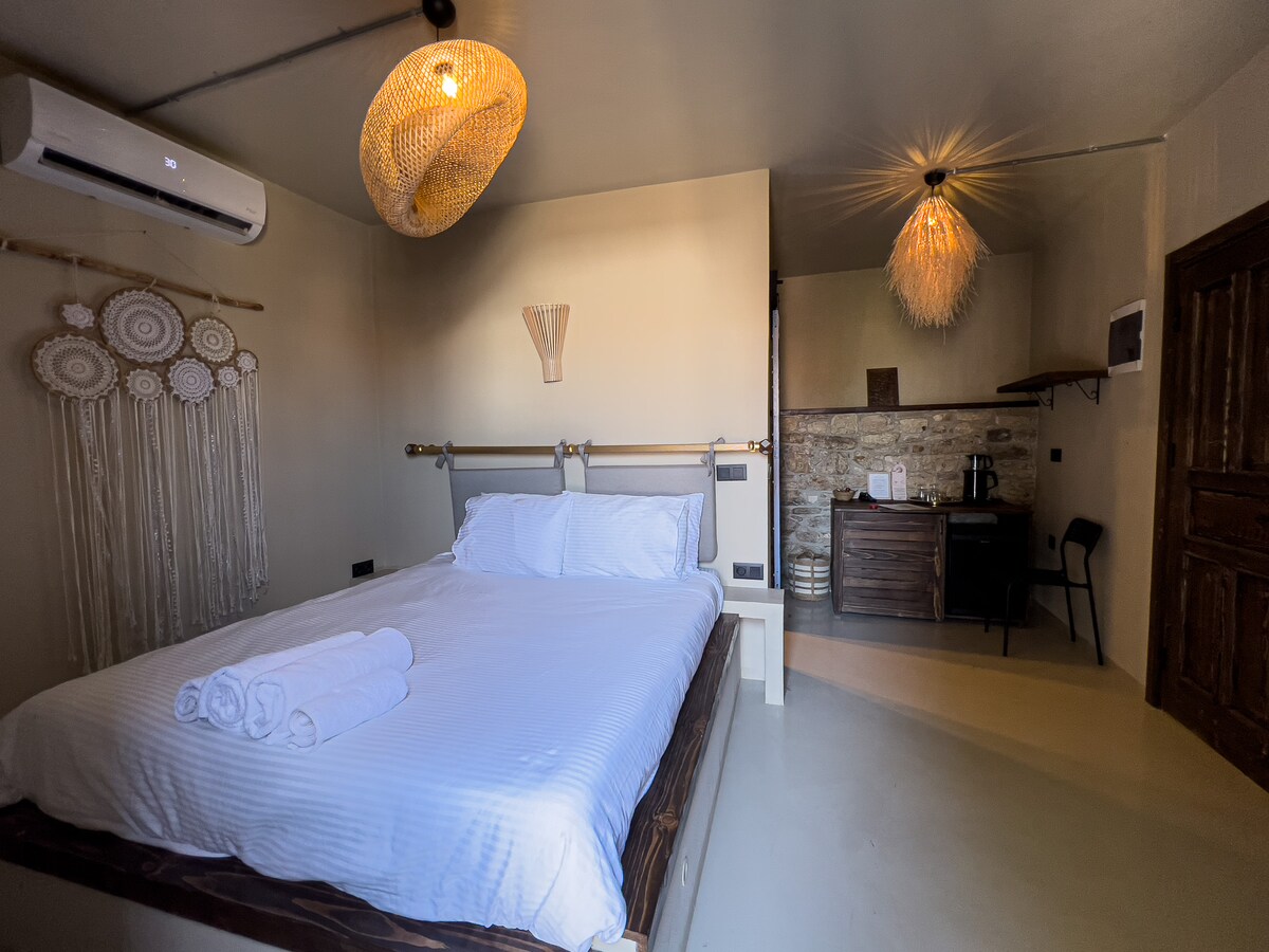 Geïnspireerd door Urla's beroemde Artichoke Festival, biedt de 'Artichoke Room' onze gasten een ruim en rustig verblijf in ons hotel. Onze kamer is 24 vierkante meter groot en is geschikt voor onze 3 gasten. Het weerspiegelt de historische en culturele textuur van Urla met zijn lokale architectuur. Ons hotel, dat aan de Art Street ligt, ligt dicht bij de populaire uitgaansgelegenheden en restaurants van Urla. Binnen een paar minuten lopen bereik je de plaatsen waar je kunt genieten van veel heerlijke gerechten.