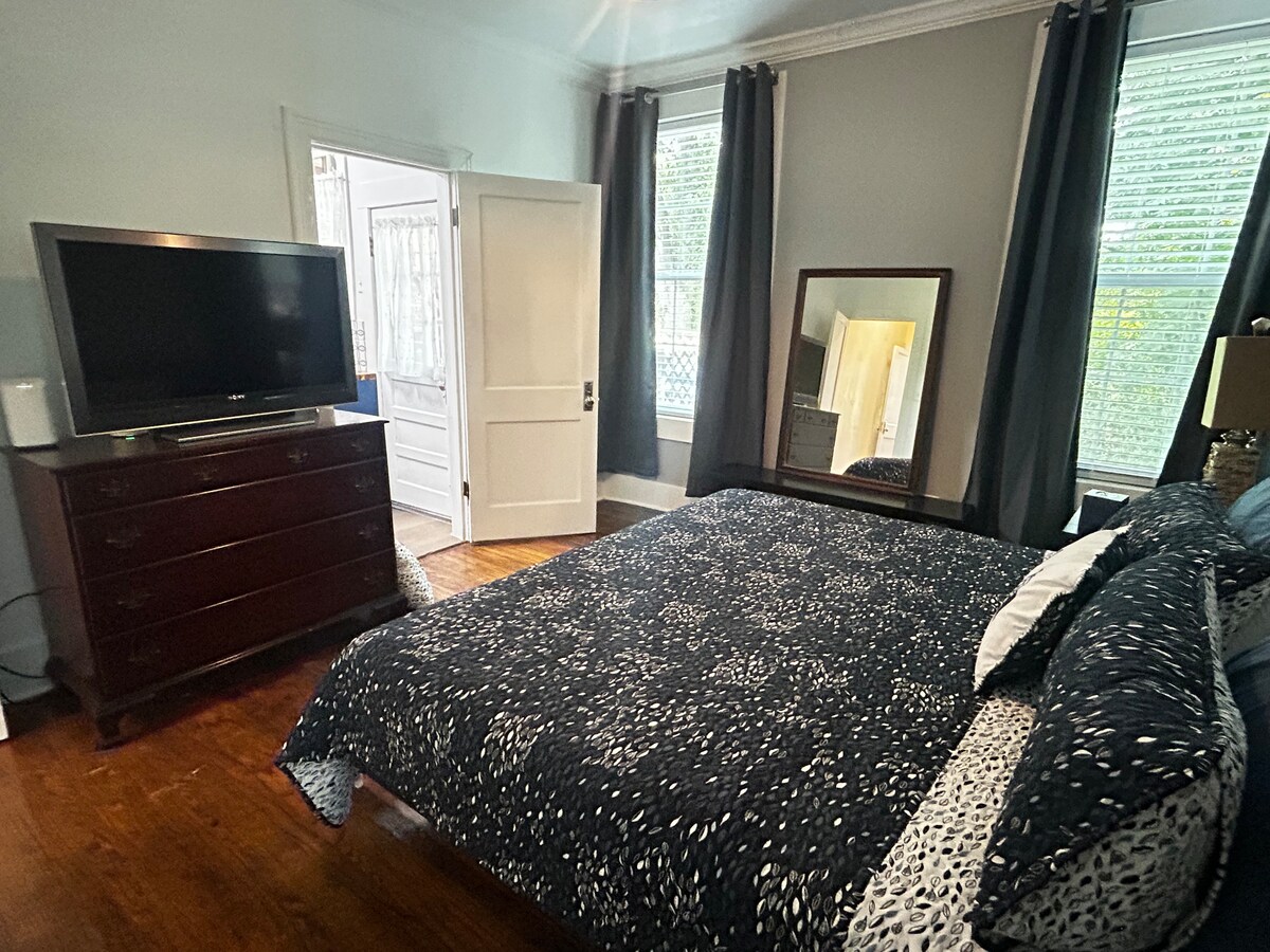 Langetermijnkortingen zijn nu beschikbaar. Welkom in dit gezellige appartement met één slaapkamer in een rustige, veilige buurt op enkele minuten van het hart van het centrum, de Belhaven-universiteit en Millsaps. Deze goed verlichte ruimte is onderdeel van een duplex uit de jaren '40 met parkeergelegenheid op straat en een privétuin voor ontspanning in de buitenlucht na een lange dag - perfect voor zakelijke professionals en culturele liefhebbers. Standaard staan we geen huisdieren toe, maar we staan er onder voorwaarden open voor, dus vraag het eerst aan.