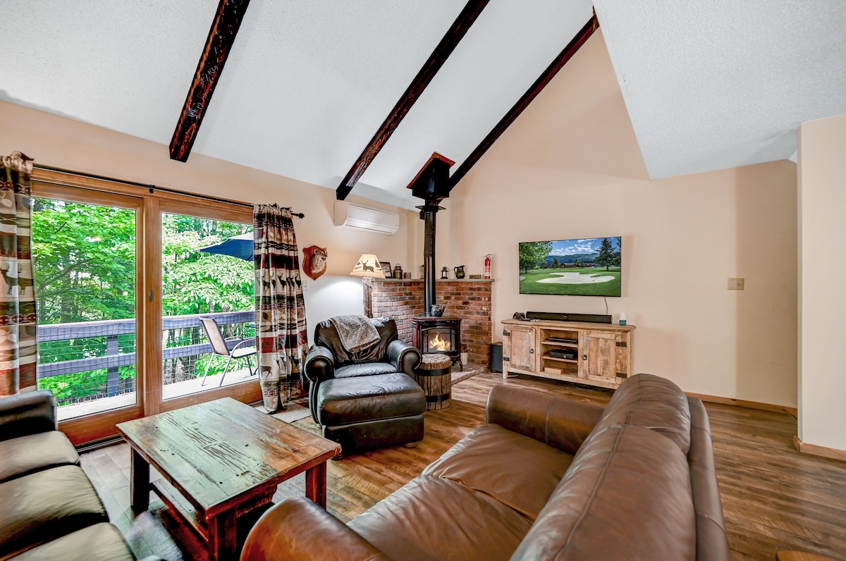 Ski slopes open on December 15! Bring the whole family and friends to our stylish, cozy unit, just a walk away from ski slopes, water parks, indoor pool, tennis courts, sauna, hot tub, and more. Enjoy the local villages, with the nearby hiking trails, waterfalls and breathtaking scenery, nearby casino. Indoors you have cozy living area with a wood fireplace, 3 large screen smart TVs, super fast WiFi. Get comfortable with central AC for hot weather days and a fully equipped kitchen for cooking.