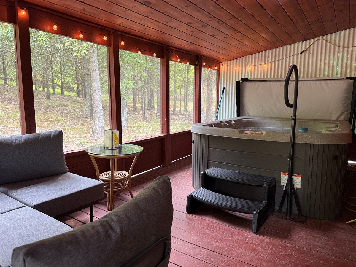 The Couple’s Retreat – Secluded Romantic Cabin Near Carbondale, Illinois Designed exclusively for one couple, The Couple’s Retreat is a peaceful hideaway where you can relax, reconnect, and rejuvenate. Enjoy a private hot tub surrounded by trees on a screened porch, cozy evenings by the fireplace, and wildlife views of deer grazing near the firepit. This restful cabin includes a grill, modern amenities, and all the comforts needed for a soothing, intimate Southern Illinois escape.