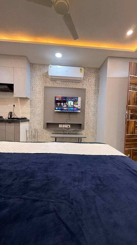 🏡 Welkom bij je verblijf in Jaipur Stap in een modern, zorgvuldig ontworpen 1 BHK-appartement in de goed verbonden buurt van Jaipur - Jagatpura ✨ Comfort en gemak • Heldere woonkamer met smart-tv en internet • Luxe slaapkamer voor een goede nachtrust • Airconditioning in alle kamers • Volledig uitgeruste keuken en wasmachine • Toiletartikelen, haardroger en schone handdoeken • Ideaal voor een kort en lang verblijf 📍 Toplocatie Centraal gelegen met winkelcentra, restaurants, winkels, entertainment - 2 minuten afstand