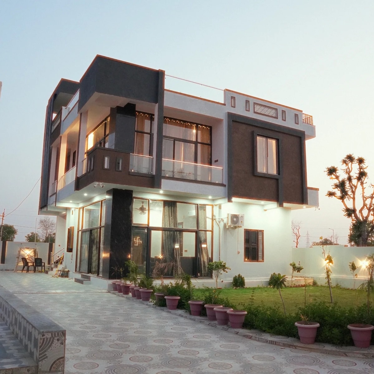 Ontsnap naar een serene 3BHK outhouse in Mahindra SEZ, Jaipur-Ajmer Road, vlakbij Deutsche Bank, Infosys & MetLife. Geniet van een weelderige tuin, kinder- en volwassenenzwembaden, 2 tentkamers, 1 villakamer en een buitenvuurplaats. Een privéchef is beschikbaar met een eigen menu - bestel online of in onze keuken. Muziek toegestaan tot 22.00 uur. Perfect voor uitstapjes, feesten of rustige verblijven op een toplocatie.