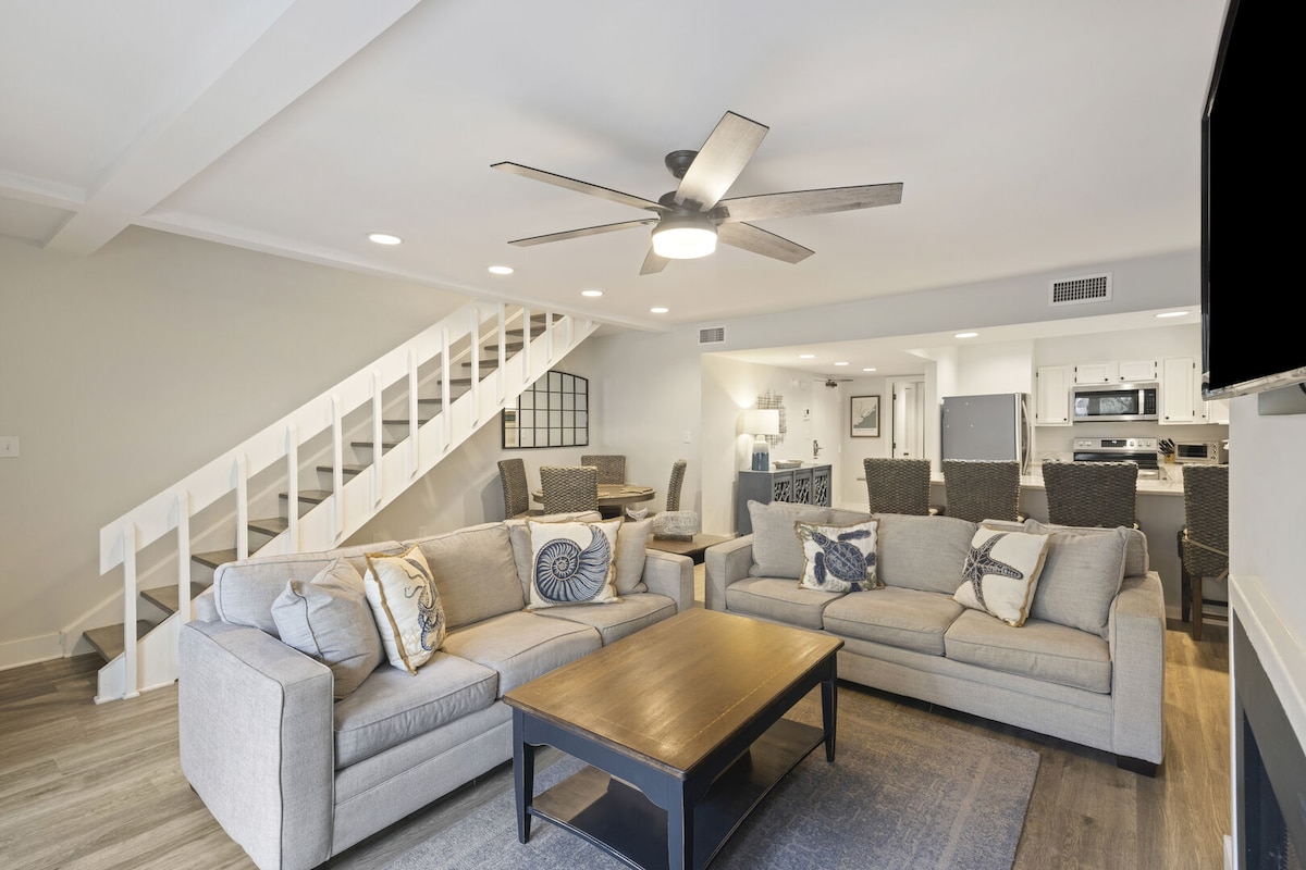 Welkom in een luxe kustverblijf met twee slaapkamers, ontworpen voor moeiteloze strandvakanties. Geniet van gemakkelijke toegang tot het strand en een volledig gevulde strandopstelling met stoelen, handdoeken, strandspeelgoed en premium schaduw (Shibumi). De woning is perfect voor gezinnen en groepen en beschikt over doordachte extra's zoals een Pack 'n Play, kinderstoel, badkamerkrukken, kindvriendelijk servies en een geluidsmachine — en ja, goed opgevoede huisdieren zijn ook welkom. Elk verblijf is verhoogd met aankomstinspecties en een zorgvuldige schoonmaak van hotelkwaliteit