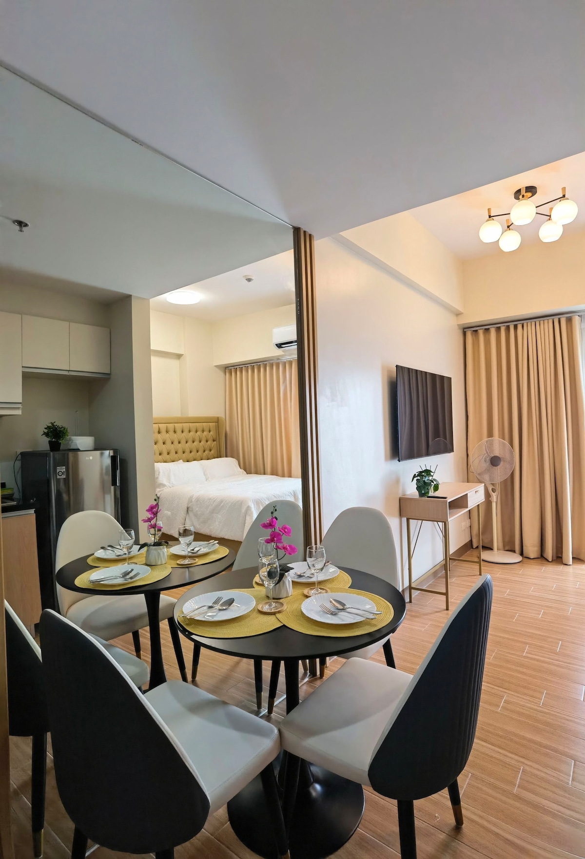 Welkom in je thuis weg van huis in de bruisende stad Iloilo, Filipijnen! Dit moderne, volledig uitgeruste appartement met 1 slaapkamer biedt een ongeëvenaarde mix van comfort, stijl en gemak, perfect voor reizigers die op zoek zijn naar een kort of lang verblijf. Genesteld vlak bij de hoofdweg en op 5 minuten rijden van het bruisende Megaworld, zorgt de toplocatie van ons appartement ervoor dat je nooit ver van de hoogtepunten van de stad bent. Of je hier nu voor werk of vrije tijd bent, alles wat je nodig hebt is binnen handbereik.