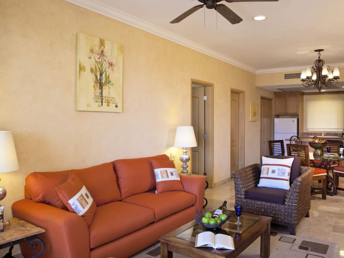 Elite Studio suite in LOS CABOS ( niet PV ) informeer eerst naar beschikbaarheid max 3 volwassenen of 2 + 2 kinderen onder de 12 VIlla del Palmar Cabo San Lucas ( STUDIO ) Neem contact met me op als je een andere locatie of grootte van het apparaat met Villa Del Palmar wilt. Kamertoewijzingen: de receptie doet zijn best om aan je voorkeur te voldoen, maar alle accommodaties zijn gebaseerd op beschikbaarheid bij het inchecken. Resorttoeslag van $ 5-10 / dag. All-inclusive ($ 140/volwassene) beschikbaar of per maaltijd en in rekening gebracht op je kamer