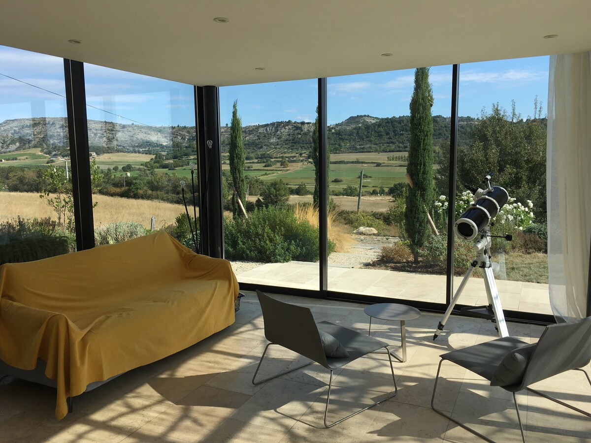 Hangende glazen lodge • Panoramisch uitzicht op de Luberon