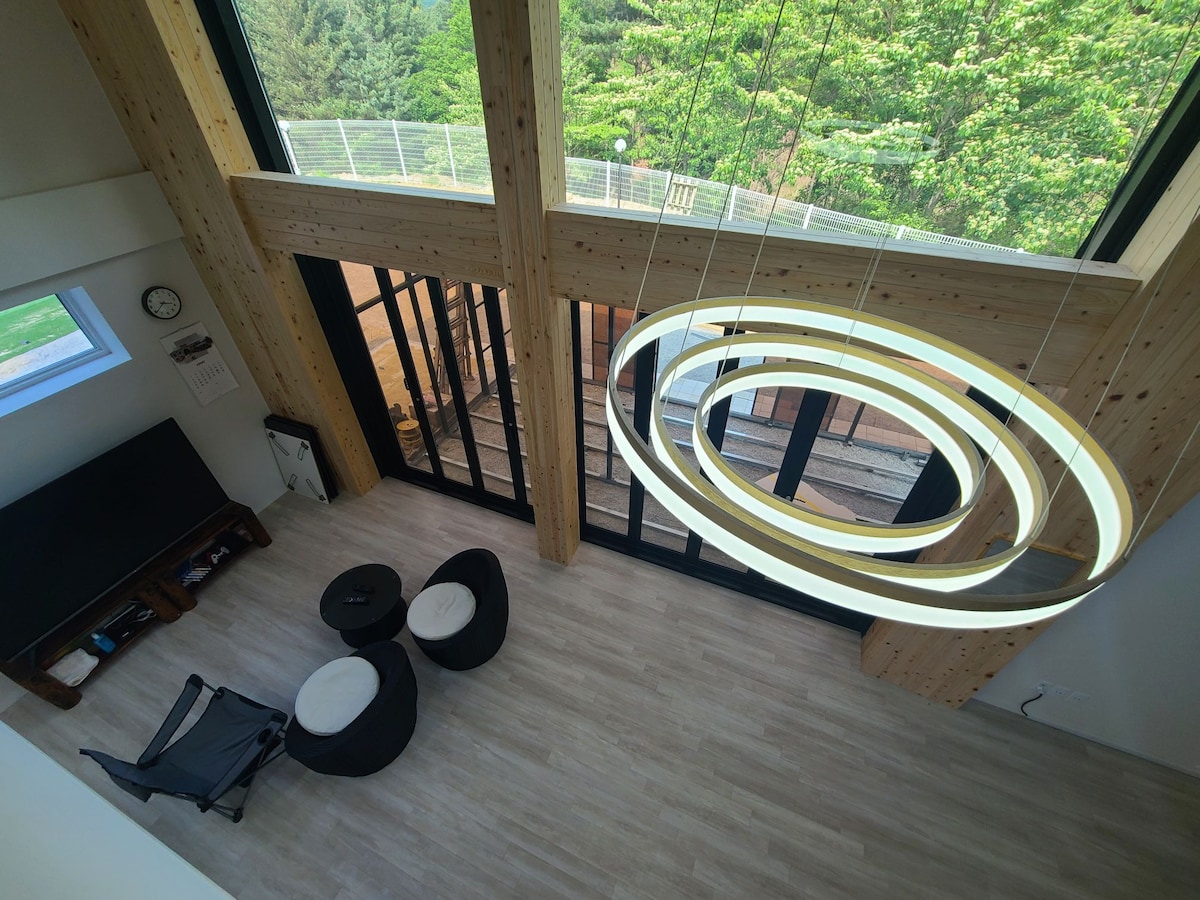 Ons huis is gelegen in de buurt van Yongwol, de provincie Gangwon en Gosi Cave.Cheongryeongpo. Jangneung. Dongseo Riviertuin Yeondangwon. Radio Star Museum.Fotomuseum. Het ligt op 15 minuten van het Sejong-observatorium (waar de shuttle je naartoe brengt), Het ligt op 25 minuten van het Koreaanse schiereiland en 35 minuten van Youth Moon Y Park. Gezinnen met kinderen zijn geschikt voor maximaal 4 personen en maximaal 3 volwassenen. Het is een loft-stijl villa, en je kunt genieten van de binnenhaard van de herfst tot het voorjaar, en je kunt zitten in de tuin voor de accommodatie en barbecueën met een ontspannen sfeer. Wij exploiteren twee onafhankelijke hutten. We verwelkomen degenen die willen ontspannen. * Gratis ophaalservice * Gratis barbecueservice * Open haard is geopend van oktober tot maart Brandhout beschikbaar * Opladen voor elektrische voertuigen beschikbaar