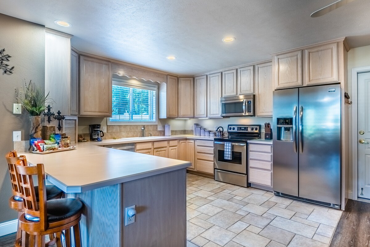 Ontspan en maak contact met het hele gezin in deze VOLLEDIG UITGERUSTE, ONLANGS GERENOVEERDE WONING MET NIEUWE ALLES. Of je nu wilt genieten van de sauna, tafelvoetbaltafel, kaart- en bordspellen en streamingdiensten binnen of ontsnappen aan de natuur met een ruime tuin, vuurplaats, gemakkelijk toegankelijke kreek en meer dan een dozijn lokale bloemen buiten, er is voor elk wat wils! Een BBQ-grill, maïsgat, gigantische Jenga & Connect 4 zijn ook buiten voor nog meer plezier.