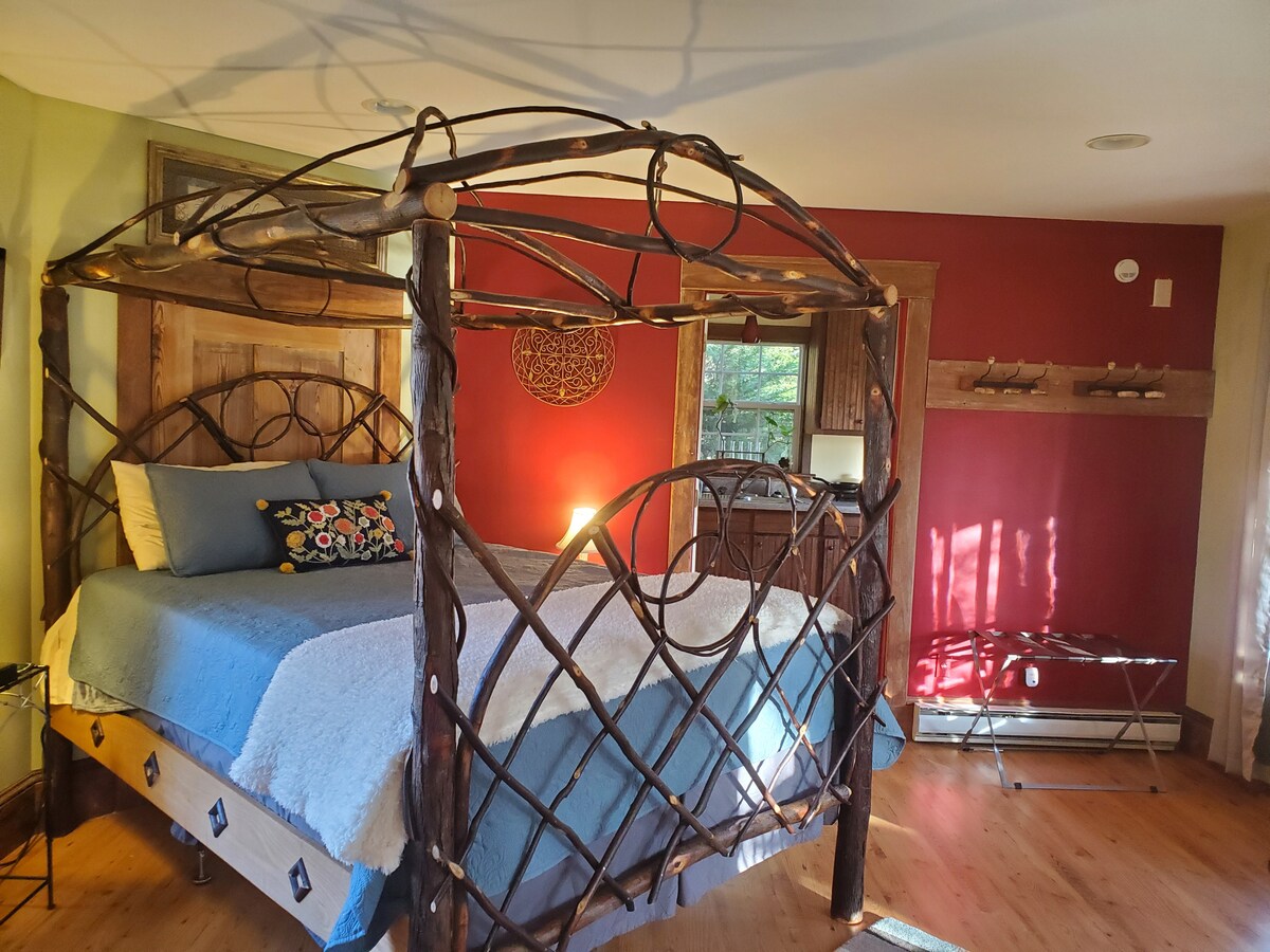 De hut is een luxe landelijke ontsnapping, met een bubbelbad voor 3 personen. Gelegen op een permacultuurwoning en inheemse plantenreservaat, kijkt de ruimte uit op de tuin en is omgeven door bos. Er zijn overal natuurlijke/lokale materialen gebruikt (gebouwd in 2023). Ga voor grotere groepen naar het gastenverblijf ernaast (Airbnb: Guest House on Homestead near Floyd/Blacksburg). ~10 mijl naar Floyd, ~20 mijl naar Blacksburg, ~35 mijl naar Roanoke.