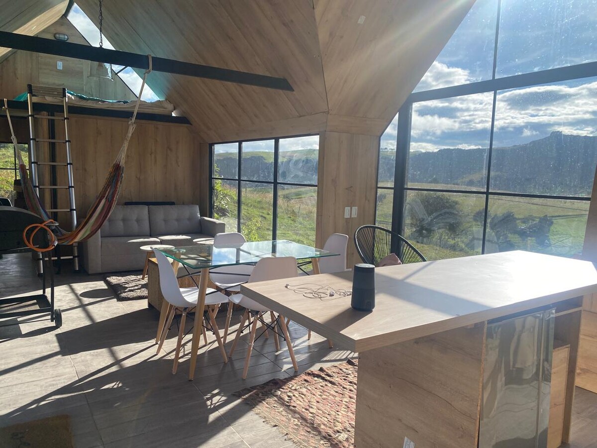 Disfruta del encantador entorno rodeado de naturaleza, en donde podrás escuchar el canto de las aves y una maravillosa vista de las montañas y cultivos de la región. En una acogedora cabaña tipo chalet, totalmente en madera de pino, que cuenta con una habitación y un altillo cada uno con cama doble. A tan solo 4 minutos en carro o 20 minutos caminando del parque principal de Jenesano, donde encontraras restaurantes y bares tipicos.