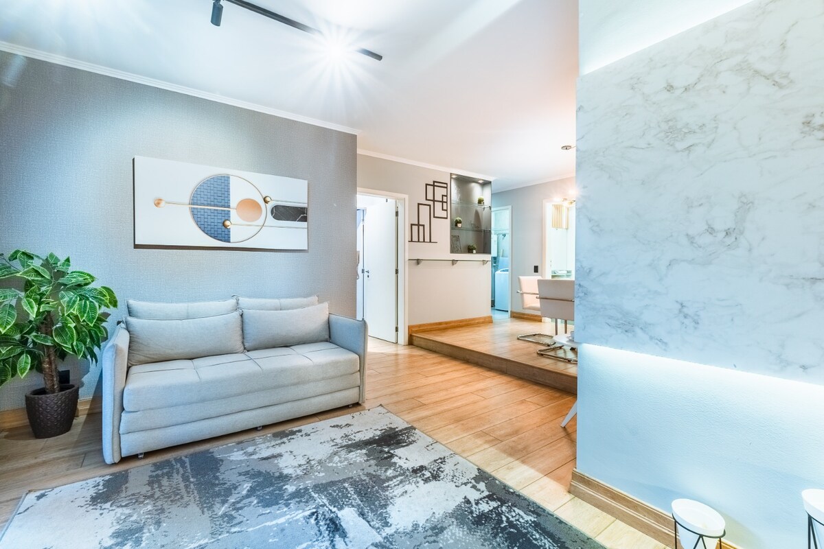 Ons appartement is goed gelegen, modern en gezellig in een van de meest interessante buurten van Campinas, perfect voor een rustig verblijf op zakenreis, evenementen of toerisme. Centrale locatie met gemakkelijke toegang Wij laten alles heel goed verzorgd zodat u zich thuis voelt, met alles wat nodig is om een rijke en gastvrije ervaring te beleven. * ONZE GARAGE IS VOOR KLEINE EN MIDDELGROTE VOERTUIGEN.