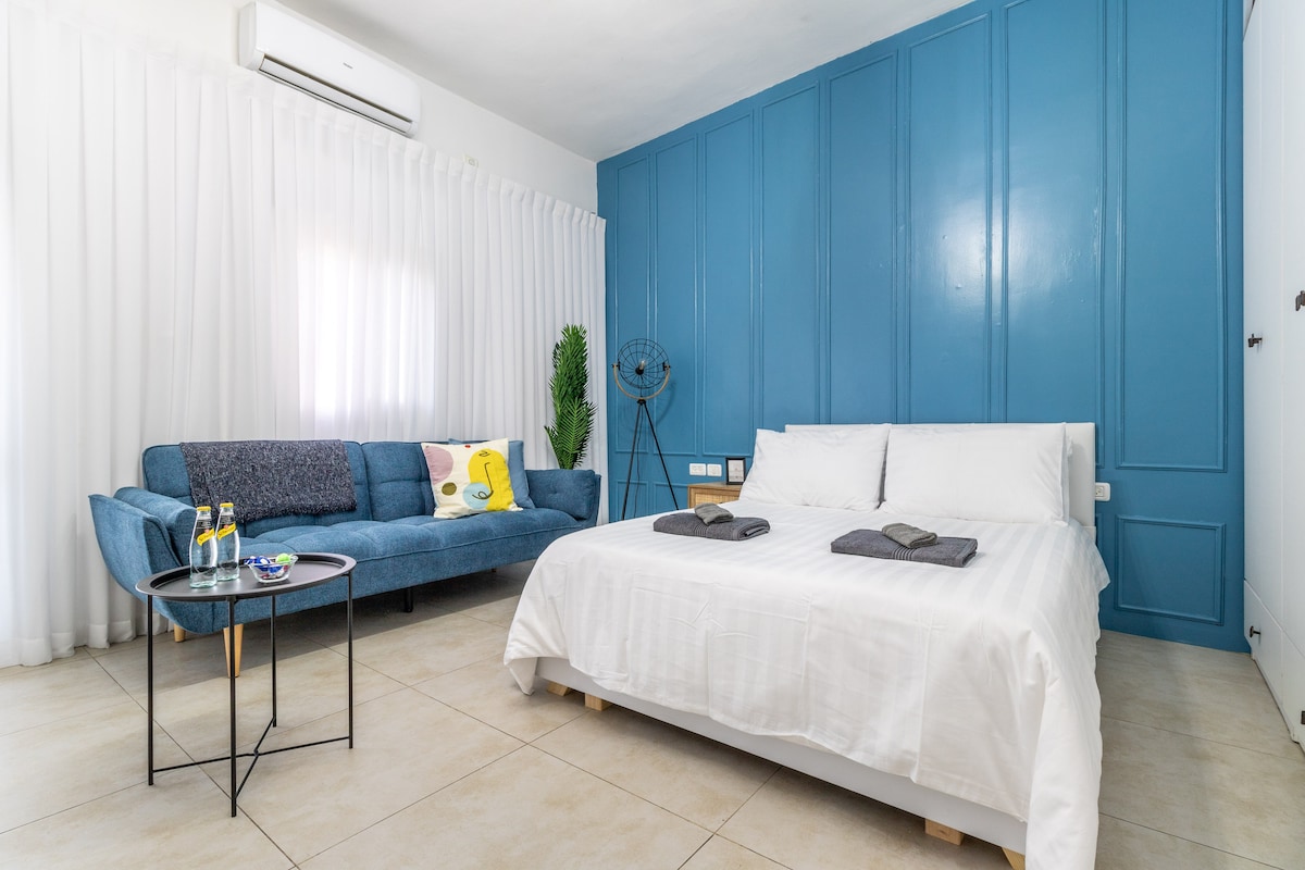 Welkom in je perfecte studio in Jeruzalem! Op loopafstand van Machane Yehuda Market, de oude stad, restaurants en vervoer. Gezellige ruimte met een tweepersoonsbed, een zithoek, een kitchenette (koelkast, magnetron, waterkoker, kookplaat, kookgerei) en een eigen badkamer met douche, handdoeken, toiletartikelen. Snelle wifi, smart-tv, airconditioning en eenvoudig zelf inchecken met code. Openbare parkeerplaats in de buurt. Let op: trappen naar het appartement – niet geschikt voor mensen met mobiliteitsproblemen.
