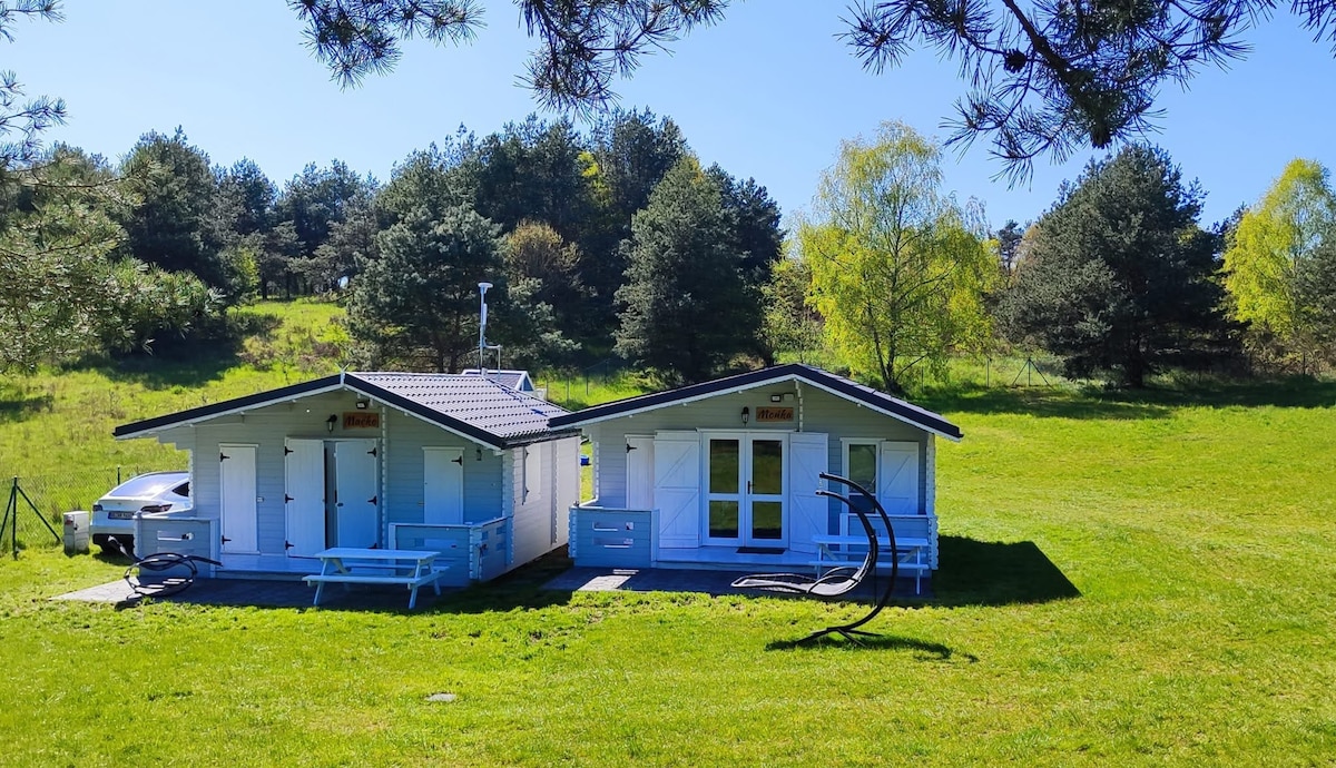 Domek otoczony jest prywatną, ogrodzoną działką 700 m², która zapewnia swobodę wypoczynku i poczucie prywatności. W ogrodzie znajduje się miejsce na ognisko, grill oraz przestrzeń do relaksu na świeżym powietrzu. Bezpośrednie sąsiedztwo lasu pozwala cieszyć się ciszą i spacerami tuż za bramą. Ogrodzony teren jest komfortowy dla par, rodzin i osób z psem. To idealne miejsce na romantyczny wypoczynek blisko natury. Nad morze można dojechać samochodem w około 20 minut.