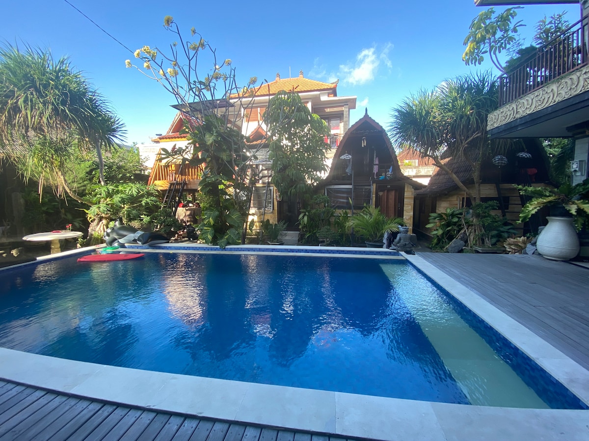 Houd het eenvoudig in deze rustige en centraal gelegen plek, perfect voor een groep van familie, vrienden of bedrijven. Gemakkelijke toegang omdat het is gelegen in de buurt van Sunset Road Kuta, parkeergelegenheid beschikbaar voor motor of auto. Wifi, airconditioning, tv, warme douche, zwembad, keuken, woonkamer en eettafel zijn beschikbaar. Gasten kunnen dagelijks, wekelijks of maandelijks verhuren. Toon uw ID (paspoort /KTP) bij het inchecken aan het personeel, al het personeel is volledig gevaccineerd. Het zwembad is niet privé, het ligt naast de accommodatie.