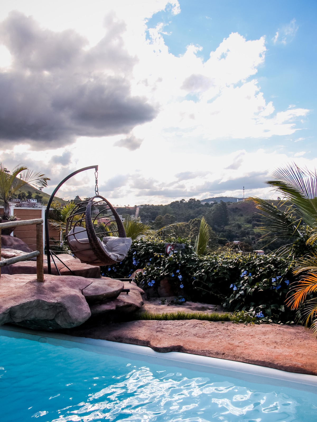 Rustiek chalet met zwembad en uitzicht in Monlevade