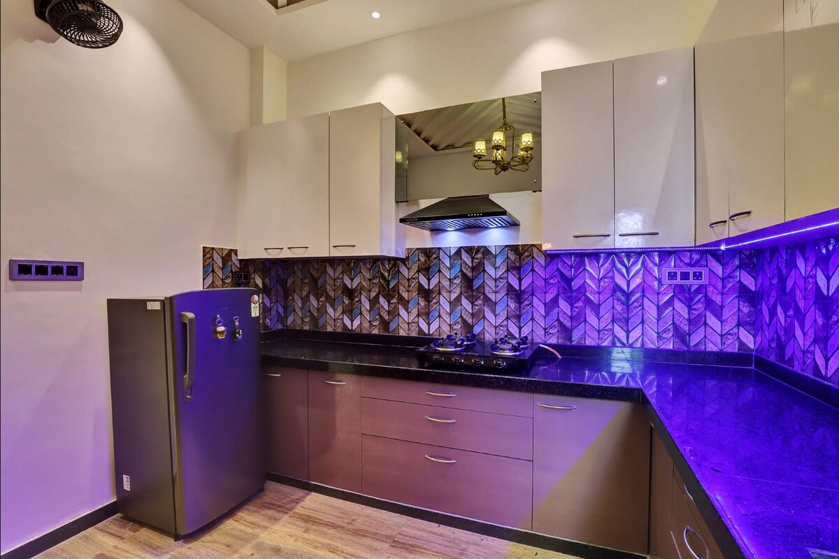 Gezellig stedelijk nest: charmant toevluchtsoord met één slaapkamer in Jodhpur. 🏡 Slimme ontsnapping naar dit zonovergoten toevluchtsoord met één slaapkamer in het hart van de stad. ❤️ Perfect voor stellen of alleenreizigers. Luxueus kingsize bed, Smart-tv-projector voor bioscoopervaring met snelle wifi. 📽️ Volledig uitgeruste keuken (fornuis, OTG, koelkast, mixer, molen, broodrooster, waterkoker) voor eenvoudige maaltijden. Luxe bad, regendouche. Op loopafstand van cafés, parken en vervoer. Zelf inchecken, smartlock-pincode. Ontspan en ontdek - boek je gezellige plekje!