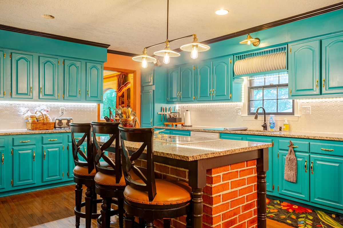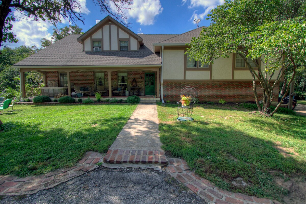 This is a 7 bedroom home on five acres. It was built to be a multi-generational home with separate spaces for young families and large communal rooms for everyone to gather together. It's a great place for retreats or family reunions! There are 2 full kitchens, 3 1/2baths, 3 living rooms. The setting is rural, surrounded by trees, horse pastures, barn. The feel of country but close to all that KC has to offer.