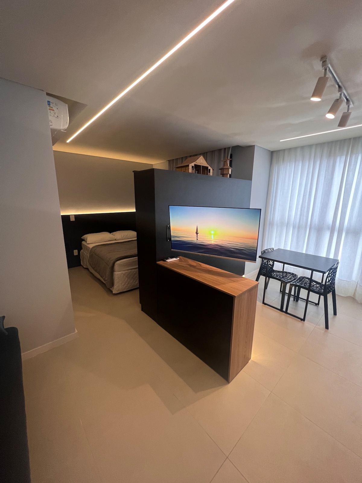 Novíssimo condomínio! Hospede-se com requinte e sofisticação numa das melhores localizações de Joinville. Studio moderno conta com os principais e novos eletros necessários à sua perfeita estadia. Cozinha equipada com todos os acessórios. Roupa de cama e toalhas padrão hotelaria de luxo. Louças e talheres finos escolhidos para encantar.
