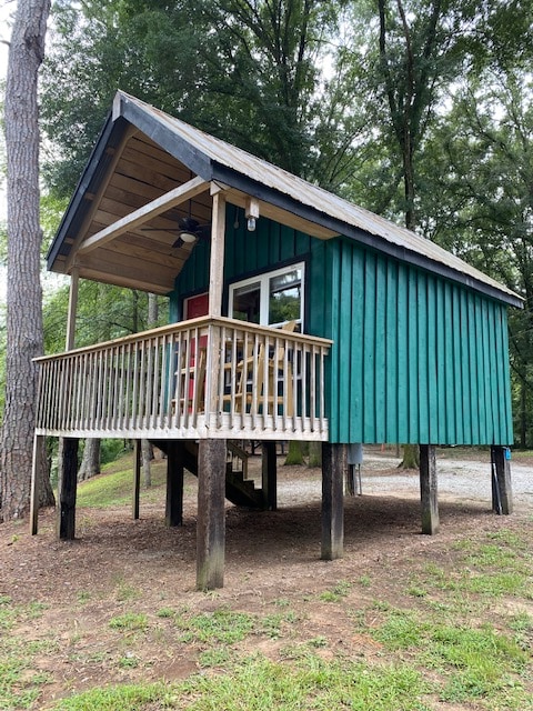 Welkom in onze mooie houten boomhut! Dit kunstwerk is met de hand gebouwd door de lokale timmerman David Green en kijkt uit over de Ocmulgee River. Onze woning met twee verdiepingen heeft twee veranda's, een slaapkamer op de zolder (volledig bed), een woonkamer (raamzitje/bar/tweepersoonsbed) en keuken (gietijzeren gootsteen met voetbediening, kookfornuis voor buiten, voorbereidingsruimte, servies, kookgerei en meer). Zoals het er nu uitziet (voorjaar 2026) is er geen binnen toilet. We hebben een toilet in campingstijl (Luggable Loo) beschikbaar.