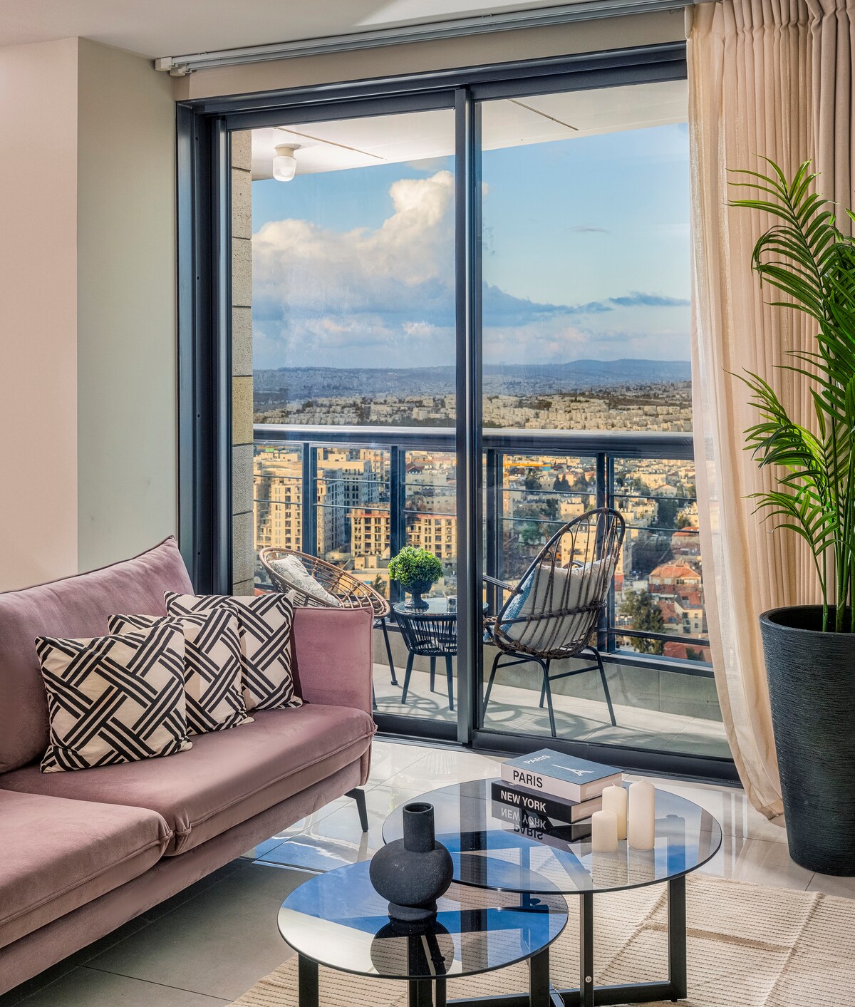 Welkom bij Luxe en gezellig appartement in het centrum van Jeruzalem. Dit prachtige huis boven de Mahane Yehuda-markt wacht op jou en je familie om te genieten van een onvergetelijke vakantie. Het uitzicht vanuit het appartement is uniek, vanaf de 20e verdieping weerhoudt het je van een duidelijk en verbazingwekkend uitzicht over heel Jeruzalem, inclusief de heilige plaats van Jeruzalem. Het gebouw en het appartement zijn groot en de beveiliging houdt het 24/7 veilig.