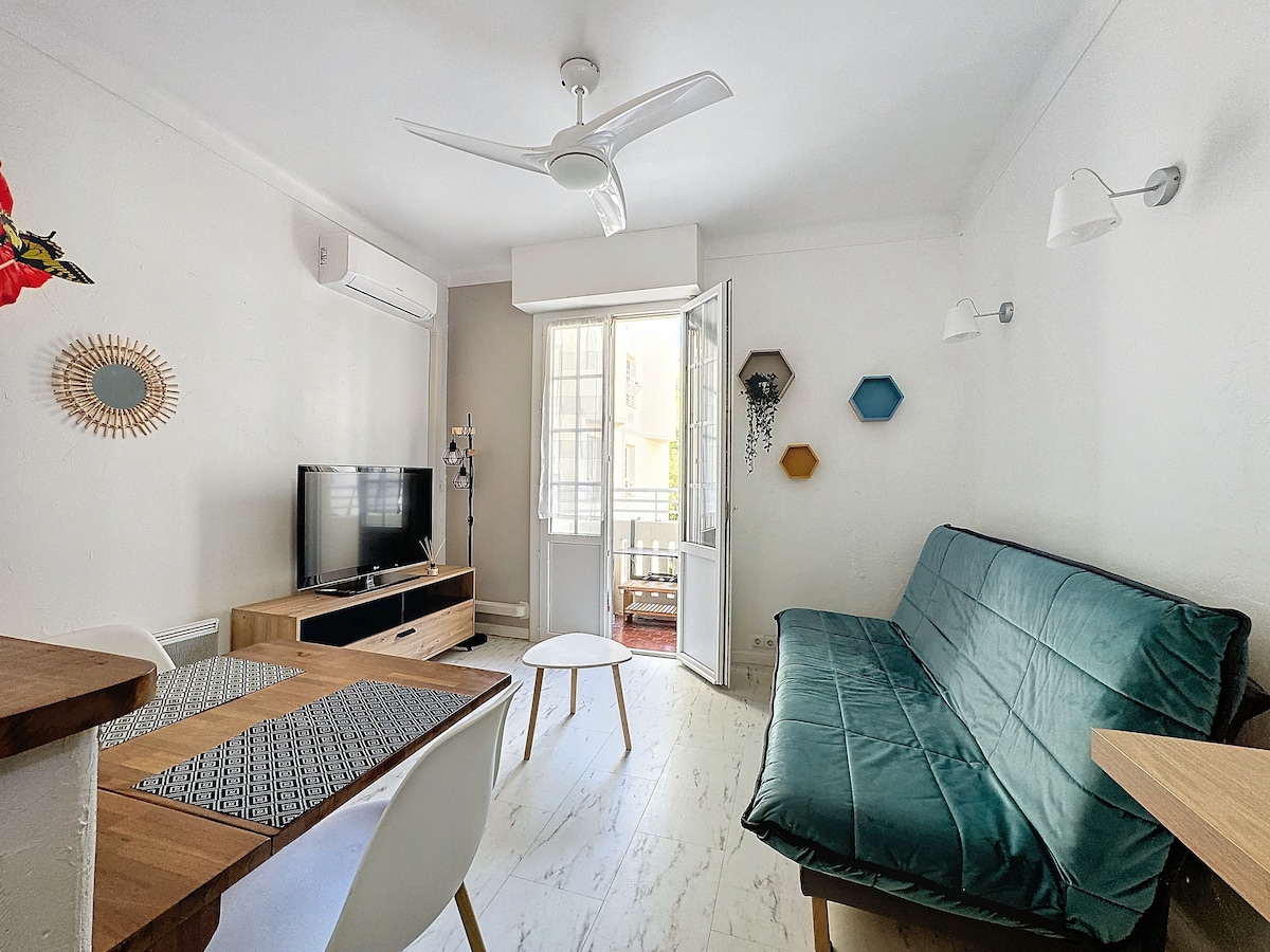 Studio met airconditioning aan zee en station op 2 minuten