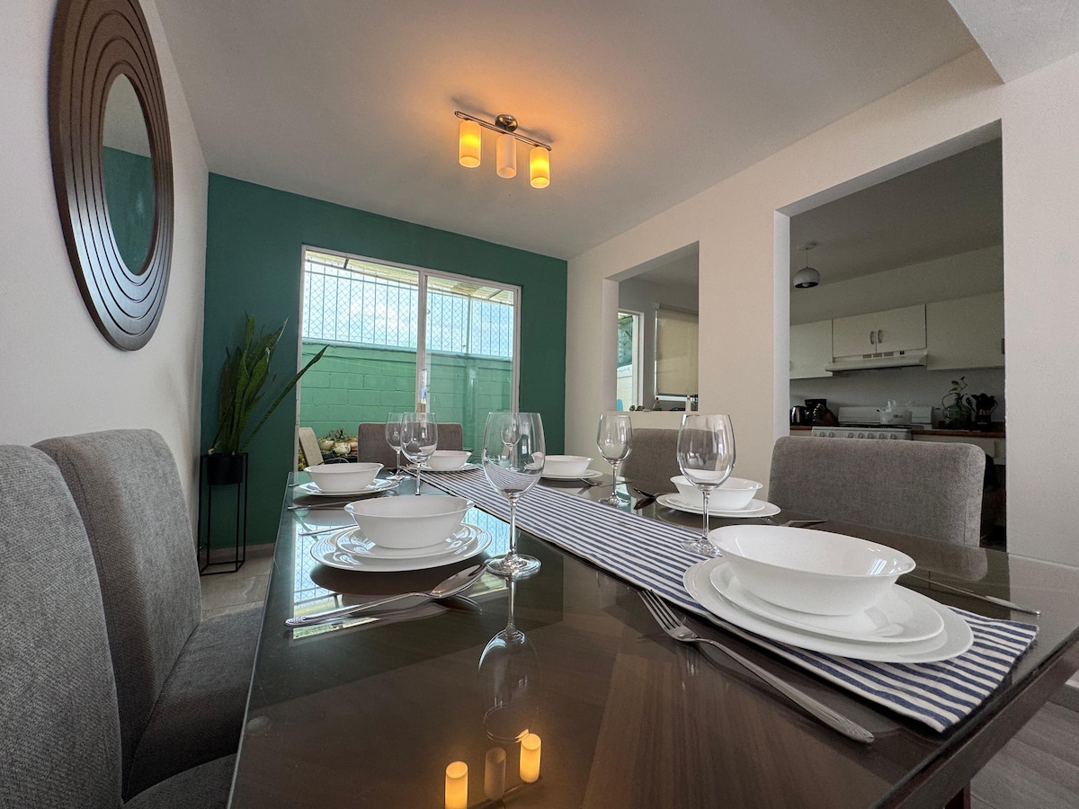 Laad je batterijen op in deze rustige, geruststellende ruimte. 🪷 Ideaal voor groeps-, familie- of zakenreizen. In een privé-onderverdeling met 24/7 bewaking, in een veilige buurt van Celaya. 8 minuten van het centrum, dicht bij pleinen, banken, restaurants en het industriële gebied. Snelle toegang tot de belangrijkste wegen. Volledig uitgerust huis, huisdiervriendelijk, met patio en wifi. Wij factureren!