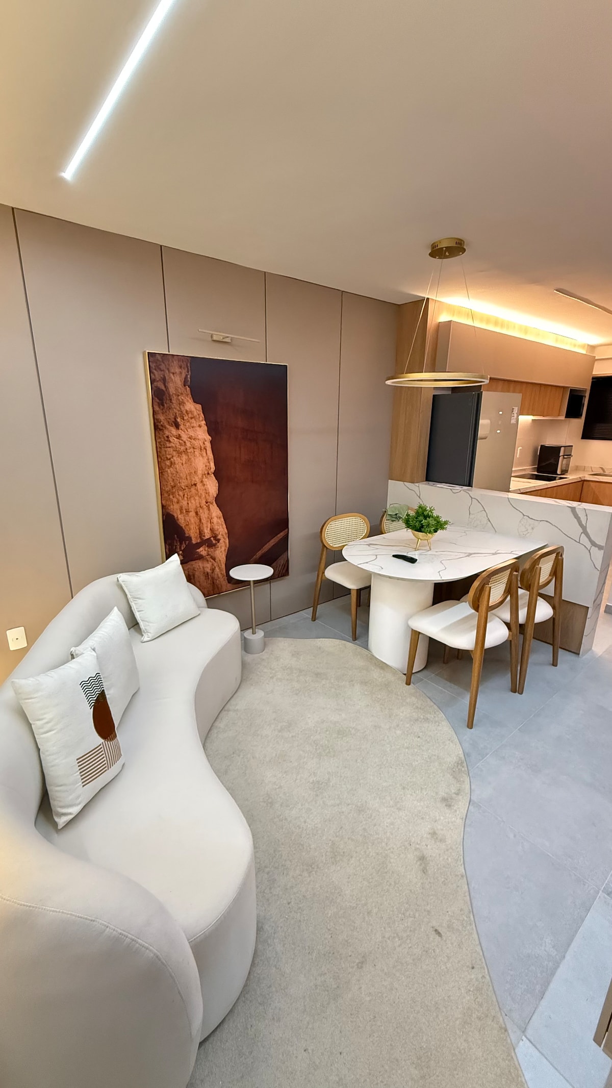 Sua família vai estar perto de tudo ao ficar neste lugar bem-localizado. O espaço é moderno, confortável, privativo e funcional, com cozinha equipada, ambiente integrado e um quarto aconchegante. Ideal para estadias curtas ou longas. Tem um pequeno outro quarto, com cama de casal. ⚠️ Ar-condicionado disponível apenas a partir de 20 de maio — por isso, o valor atual está com uma oferta especial.